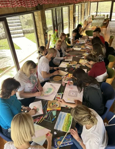 Na Vučju vjerujemo da priroda i umjetnost zajedno otvaraju prostor za mir, introspekciju i lični razvoj. Art terapija je upravo takvo iskustvo ,nježan spoj psihoterapije i kreativnog stvaranja, u kojem boje, linije i oblici postaju put ka unutrašnjoj ravnoteži.