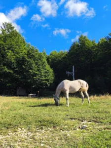 In addition to volunteer work, I had a lot of free time to relax, walk in the surrounding mountains, admire the sunset in the company of Vučje’s dogs, and go horse riding, which was particularly memorable, as I hadn’t done it for several years.